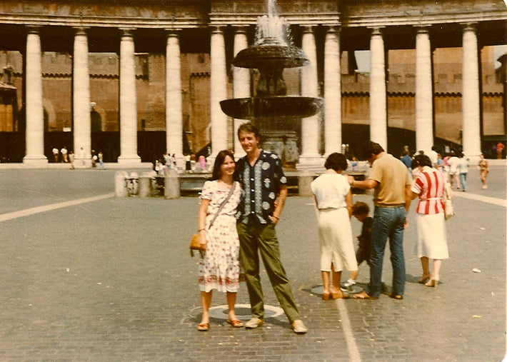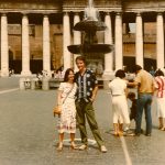 Nell’81 convinsi a Beth e ce ne andammo a Roma per un mese di vacanza, che passammo tra casa di mamma e Mariella, e casa Ferri a Casal Lumbroso, dove c’era una piscina e campi da tennis. Fiorella mi metteva sempre al lavoro a dipingere, in camera del figlio Giorgio, dipinsi su una parete un aereo pilotato da uno della Banda Bassotti (Disney), perché Toni era pilota… Le dipinsi dei mobili per la camera della figlia Stefania, e tante magliette dipinte a mano con colori acrilici, per tutti… Ci davano sempre una macchina per poterci spostare indipendentemente, e feci il capogruppo, portando Beth e Maga in giro per tutti i siti turistici d’obbligo come San Pietro e i musei vaticani, Castel Sant’Angelo, il Colosseo e il Foro, Piazza Navona (Dove Mariella lavorava alla gioielleria APA, a fianco al Tre Scalini), piazza di Spagna, villa Borghese, e Trastevere, e mi ricollegai con Stefano L. (andammo a farci una pizza a Trastevere e parlammo per ore), anche a Trastevere m’incontrai con Vaporetto (che avevo ritrovato vivendo a NY nel 74), e andai a trovare Fabio e sua figlia Amauta a casa loro a piazza Ragusa.