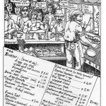 Beth aveva la sua macchina e si viaggiava assieme quando i nostri orari ce lo permettevano. Lei andava al lavoro per il suo turno notturno verso le dieci di sera, quando io e Maga ce ne andavamo a dormire, e ritornava a casa la mattina quando noi ci si svegliava e ci si preparava a prendere l’autobus che ci portava a SF. La sera poi, dopo aver preso la figlia alla scuola nido, facevo della spesa e si prendeva l’autobus per tornare a casa, dove mentre Maga si guardava la televisione, io preparavo la cena per noi e conservavo la porzione per Beth, per quando si sarebbe svegliata. Poi, messa la figlia a letto, mi mettevo a disegnare e a dipingere, ascoltando la radio e fumando l’immancabile joint.