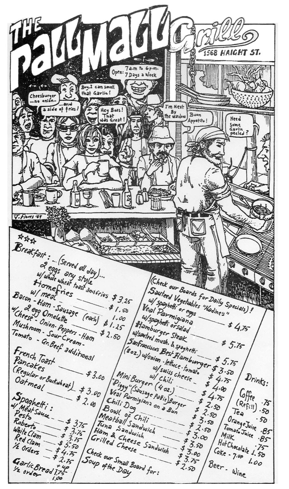 Lavorando prima come lavapiatti, poi come apprendista cuoco e poi cuoco in vari locali su Haight Street, frequentai e mi associai con tantissimi nuovi amici che come me credevano nel messaggio di Pace e Amore. Contribuii pure alla creazione della prima Haight~Ashbury Streetfair, evento annuale che continua tuttora ogni anno, diventando parte del comitato organizzativo. Disegnai il Logotipo, tanti poster e magliette, e come libero professionista, ottenni lavori dai vari negozianti (molti erano amici) e disegnai logotipi, vetrine, tende e cartelli, e murali, alcuni ancora sopravviventi. Alla galleria si prendeva turno allo spazio/galleria, e ognuno dei membri poteva fare esposizioni proprie, oltre alle mostre di gruppo. Avevo come cliente il negozio di magliette (che vendeva anche libri), che finanziava la stampa di alcuni miei disegni popolari su magliette da vendere al negozio e io ne ricavavo una percentuale.