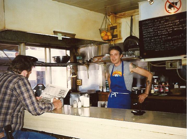 Io passai a lavorare in un altro ristorante/pizzeria chiamato All You Knead, gestito come cooperativa da un gruppo di amici. Un grande salone con soffitti altissimi con tanti tavoli e booth lungo i due lati. Una grande cucina aperta, dietro un banco di legno dove c’era la cassa, con un grande forno (a gas) per la pizza, vari fornelli, varie stazioni di lavoro. Una scala in fondo della sala da pranzo sulla destra, portava a due toilette e un piccolo ufficio con aperture sulla sala principale da un lato, e sulla cucina dall’altro. Cominciai come lavapiatti, e prendevo le ordinazioni al telefono, mentre andavo imparando come funziona un vero ristorante. Avevamo un bel menù con i soliti panini, insalate e minestre, e in più c’era la pizza che era pure buona, e attirava molti clienti. Eravamo tutti amici e si faceva ampio uso di fumo e coca nella cucina… Si faceva la colletta e si comprava un paio di grammi di coca che ci dividevamo durante il nostro turno. Quando cominciai come sous-chef, feci assumere un nuovo amico italiano conosciuto al GP, un Pippo Privitelli, Siciliano, come lavapiatti. Pippo suonava musica ed era accordatore di pianoforti… Lavorando assieme si scherzava in italiano e si fumavano tante canne. Decidemmo di fare una sera a settimana una “Pasta Night” per gli impiegati, e introducemmo la Carbonara, sconosciuta a questi americani abituati solo alla pasta al pomodoro. E fu un grande successo, tanto che si decise di cominciare a servirla anche ai clienti regolarmente. E s’introdusse anche il menù per la colazione, con uova, patate, pancake, etc., e il ristorante era sempre pieno.